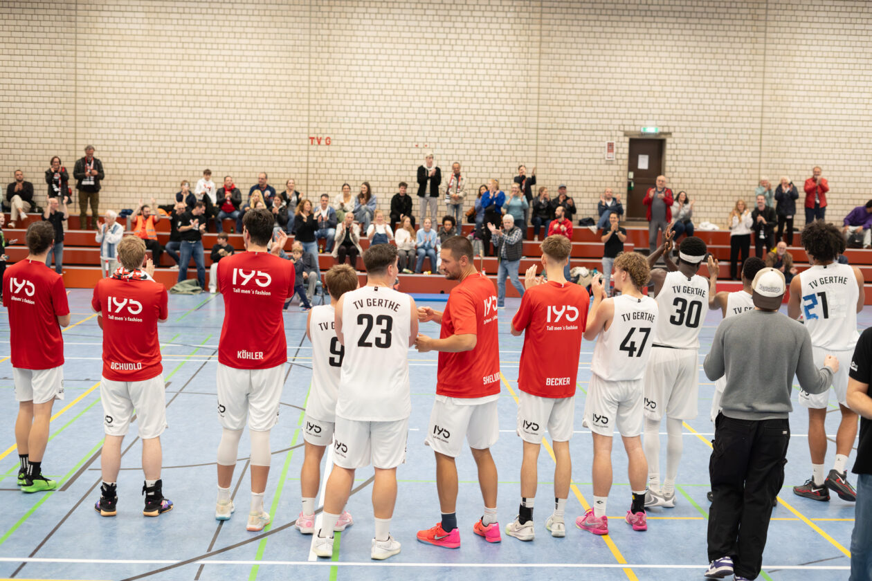 Schon vor der Partie der 1. Herren wurde es stimmungsvoll: Die 2. Herren feierten in der Landesliga einen Derby-Sieg gegen den BC Langendreer (91:78). Unglaublich war dabei das dritte Viertel: Nach einem 21-Punkte-Rückstand zur Halbzeit spielte Gerthe wie entfesselt, gewann den Abschnitt mit 39:6 – gefühlt ein Rekord. Weder die Gegner noch die Fans wussten, wie ihnen geschah.