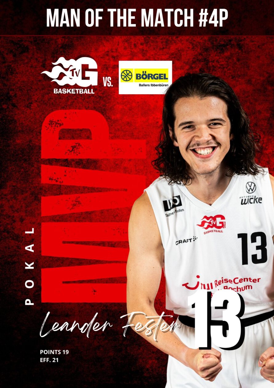 Unser MVP des Spiels ist diesmal LEANDER unser Gerther Jung! Mit seiner überragenden Defense hat er seinen Gegenspielern das Leben echt schwer gemacht. Glückwunsch Leander, mehr als verdient!