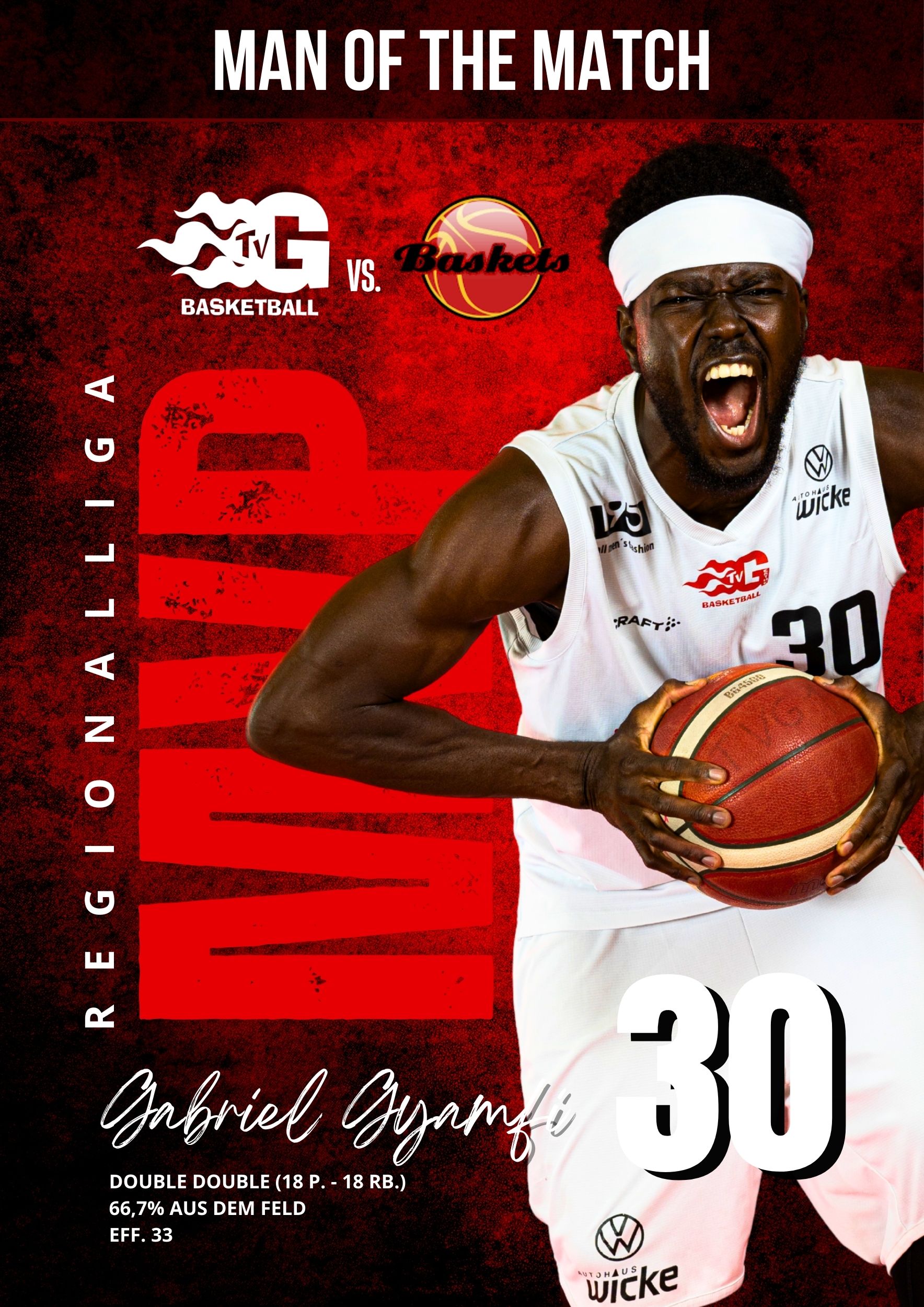 Unser MVP des Spiels ist diesmal LEANDER unser Gerther Jung! Mit seiner überragenden Defense hat er seinen Gegenspielern das Leben echt schwer gemacht. Glückwunsch Leander, mehr als verdient!