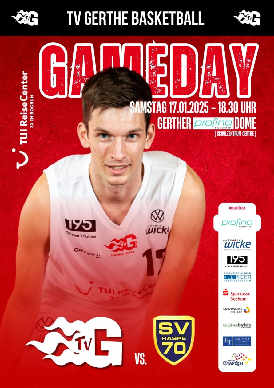 Am Samstagabend um 18:30 Uhr ist es endlich wieder so weit: Die Herren des TV Gerthe eröffnen das Basketballjahr 2026 mit einem Heimspiel im Profina Dome. Zum Abschluss der Hinrunde empfangen die Gerther die Reserve des SV Hagen-Haspe.
