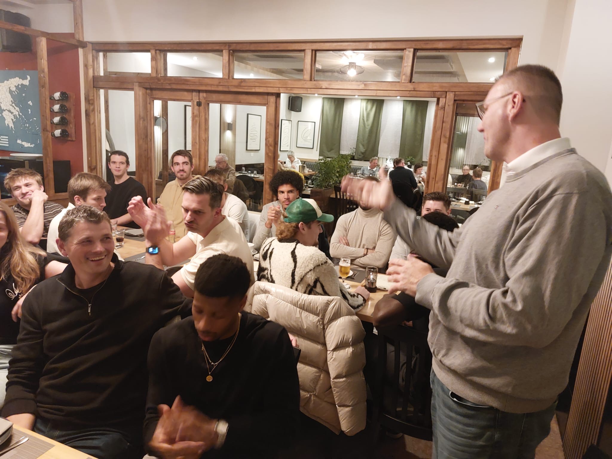 Anlässlich der tollen Platzierungen unserer Herren-1- und Damen-1-Mannschaften luden Inhaber Herr Kyropoulos und sein Sohn die beiden Teams zu einem kulinarischen Abend ein – eine schöne Gelegenheit, sich gemeinsam auf die Weihnachtszeit und die letzten Spiele einzustimmen.