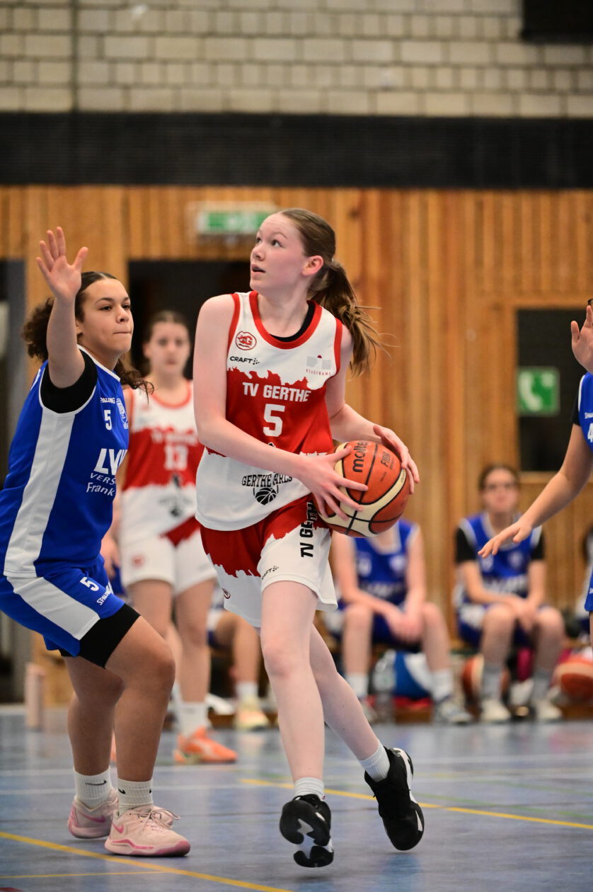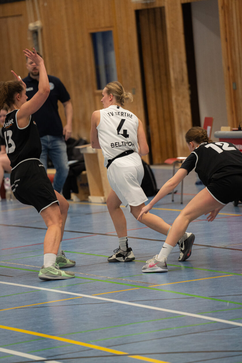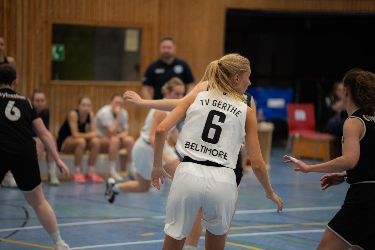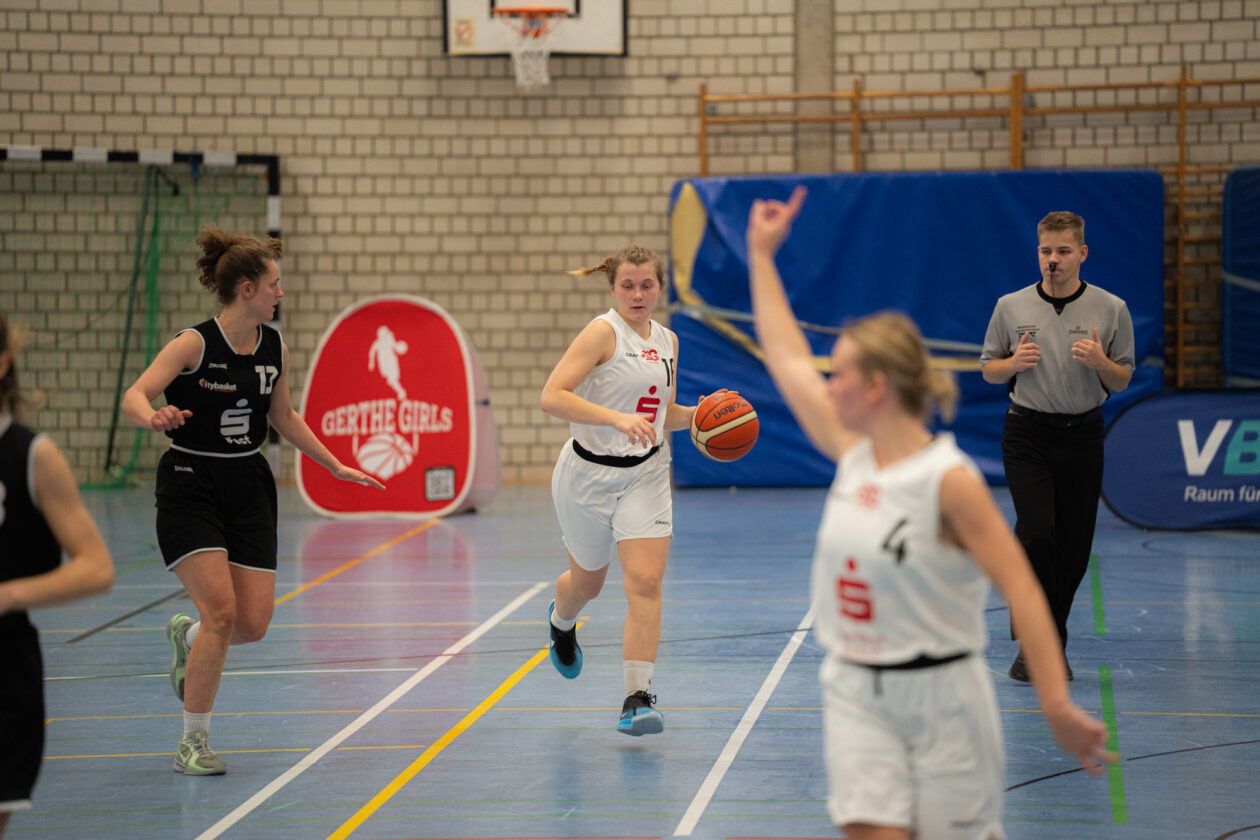 Zu Beginn des zweiten Viertels steigerten sich die Gertherinnen deutlich. Sie verteidigten aggressiver und cleverer, erarbeiteten sich viele Ballgewinne, konnten diese jedoch noch nicht konsequent in Punkte ummünzen. Der Rückstand schrumpfte dennoch kontinuierlich, sodass Gerthe beim 23:26-Pausenstand wieder in Schlagdistanz war.