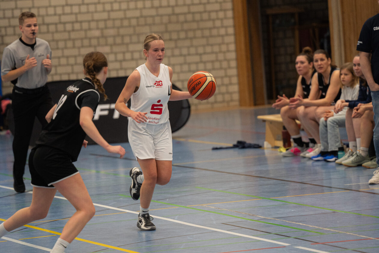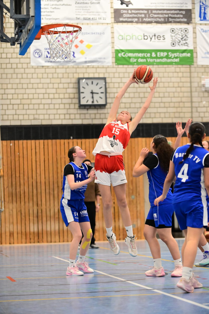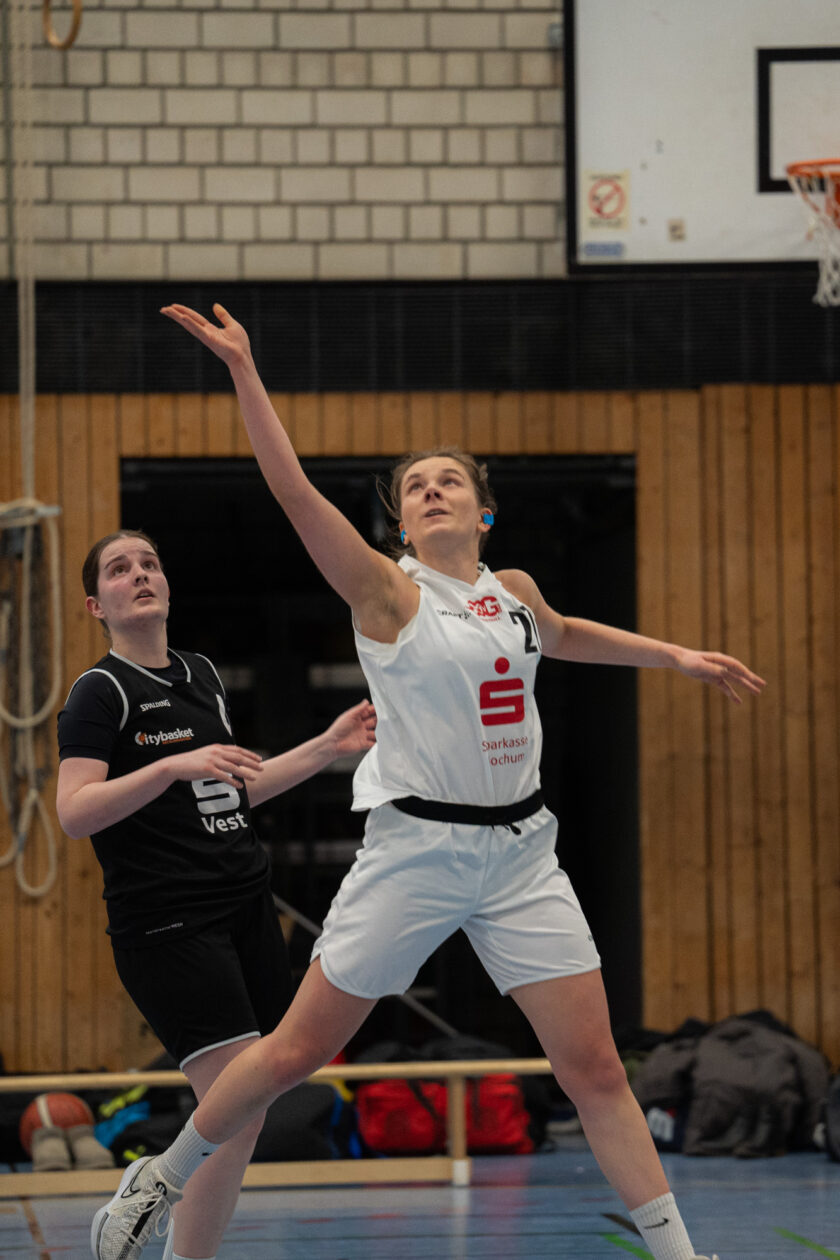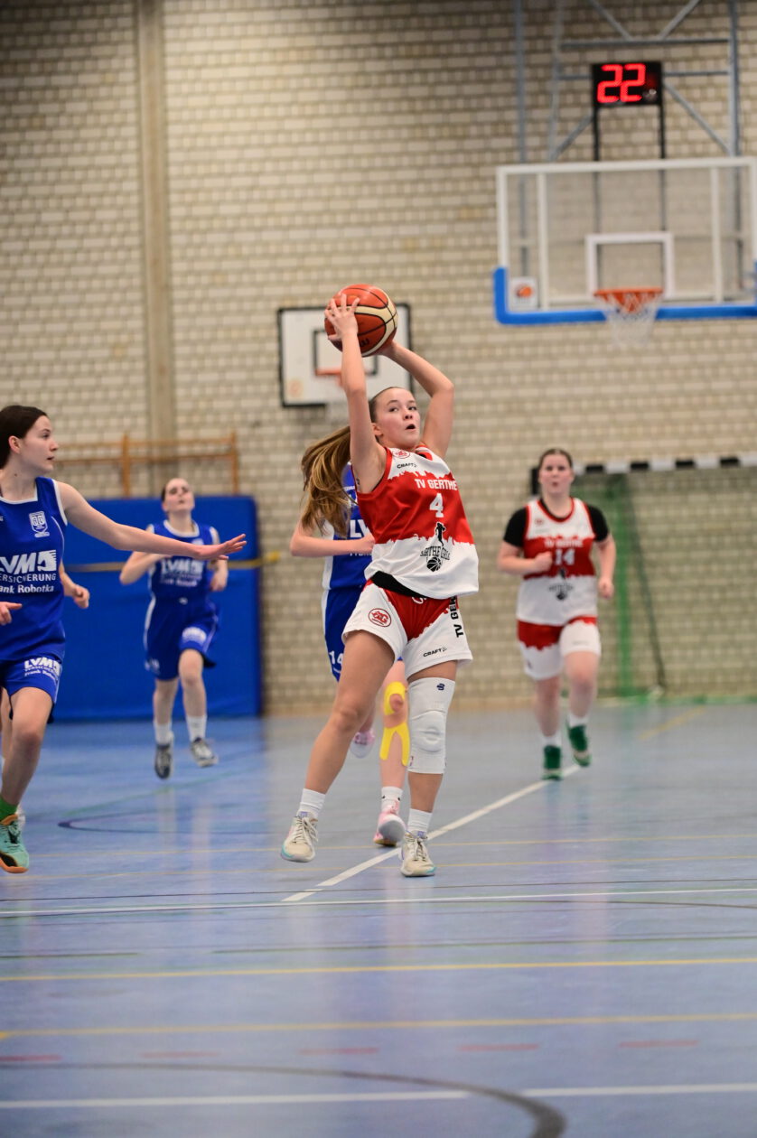 Zu Beginn des zweiten Viertels steigerten sich die Gertherinnen deutlich. Sie verteidigten aggressiver und cleverer, erarbeiteten sich viele Ballgewinne, konnten diese jedoch noch nicht konsequent in Punkte ummünzen. Der Rückstand schrumpfte dennoch kontinuierlich, sodass Gerthe beim 23:26-Pausenstand wieder in Schlagdistanz war.