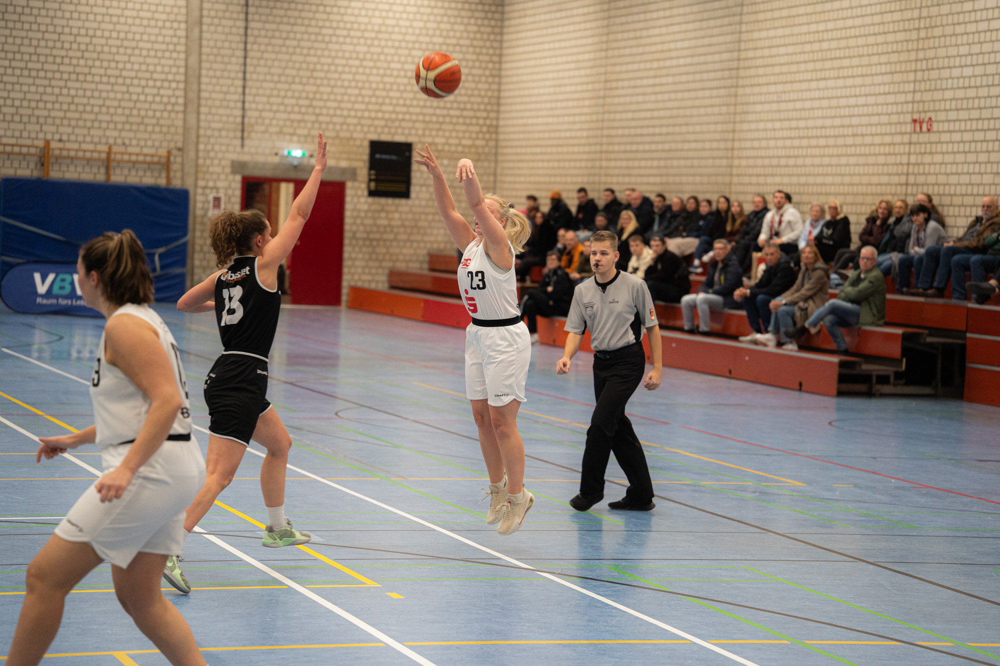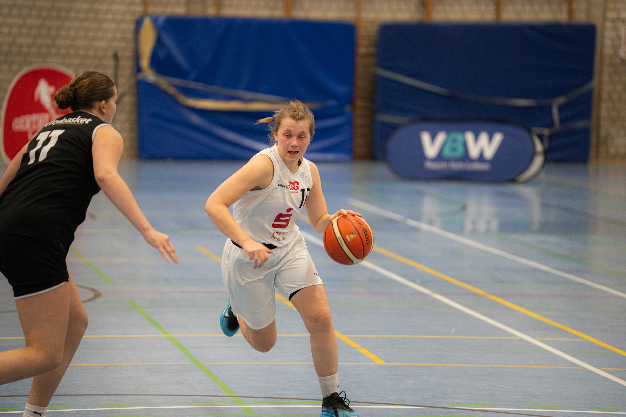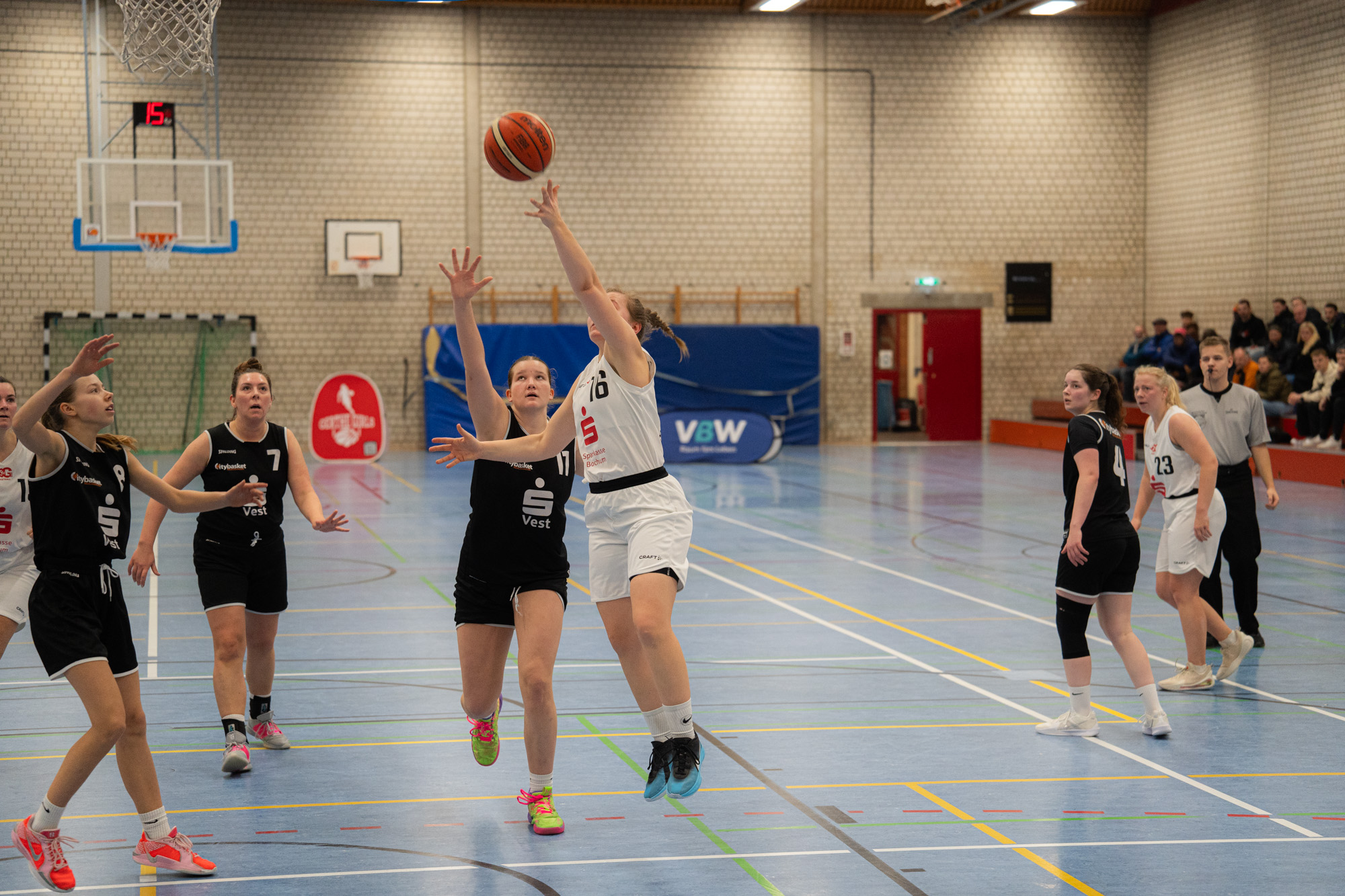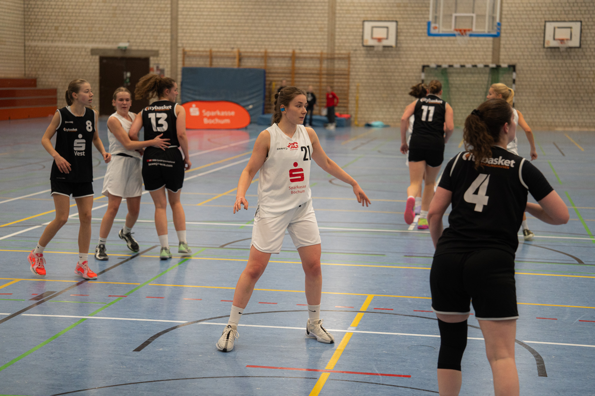 Zu Beginn des zweiten Viertels steigerten sich die Gertherinnen deutlich. Sie verteidigten aggressiver und cleverer, erarbeiteten sich viele Ballgewinne, konnten diese jedoch noch nicht konsequent in Punkte ummünzen. Der Rückstand schrumpfte dennoch kontinuierlich, sodass Gerthe beim 23:26-Pausenstand wieder in Schlagdistanz war.