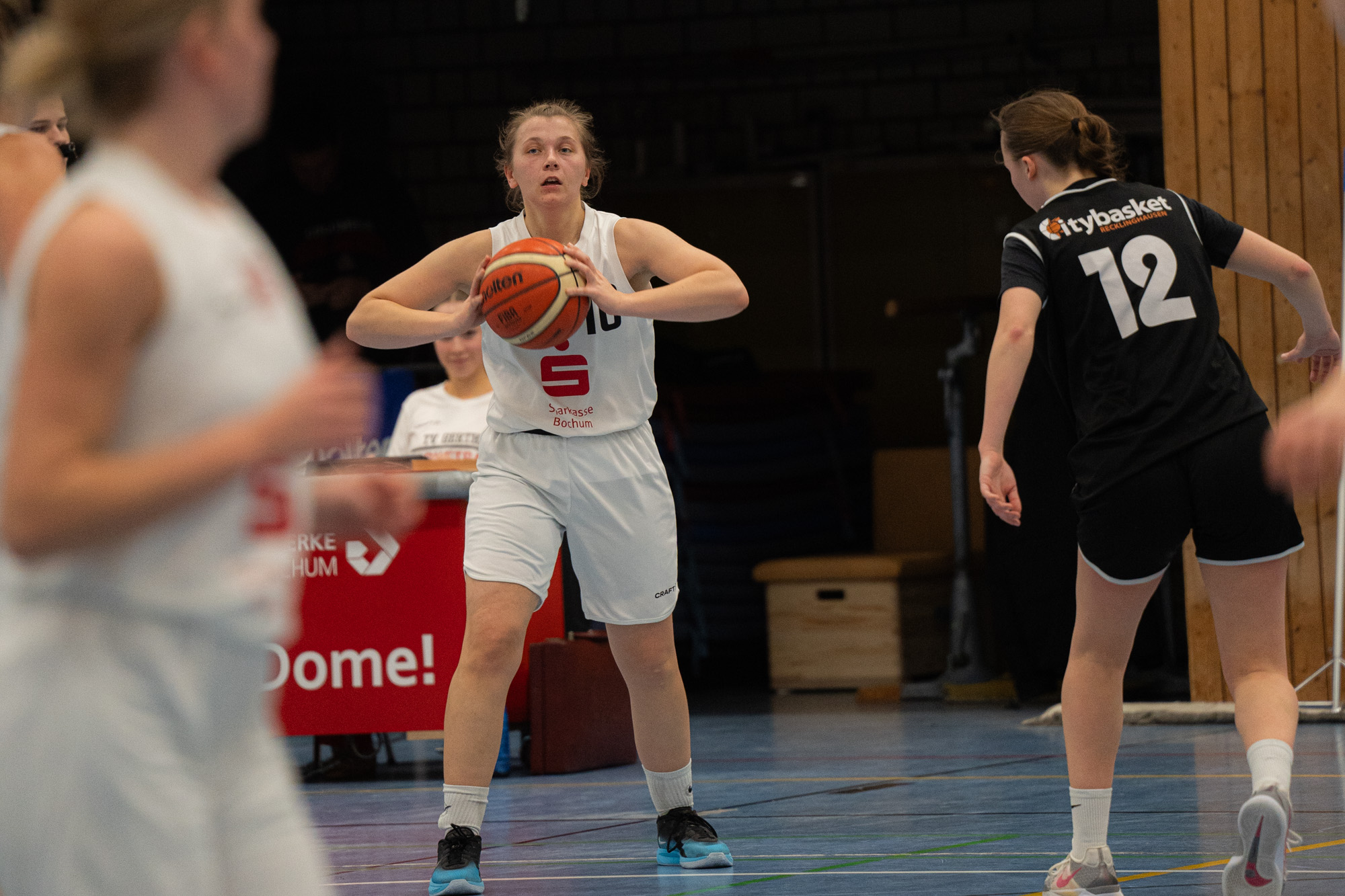 Nach einem guten 6:3-Start war zunächst der Gast aus Recklinghausen die bessere Mannschaft. Die Citybaskets trafen hochprozentig von außen, zogen konsequent zum Korb und verteidigten die Gertherinnen – die ohne Caterina Schneider antreten mussten – sehr stark. Der Lohn war eine verdiente 18:8-Führung für die Gäste.