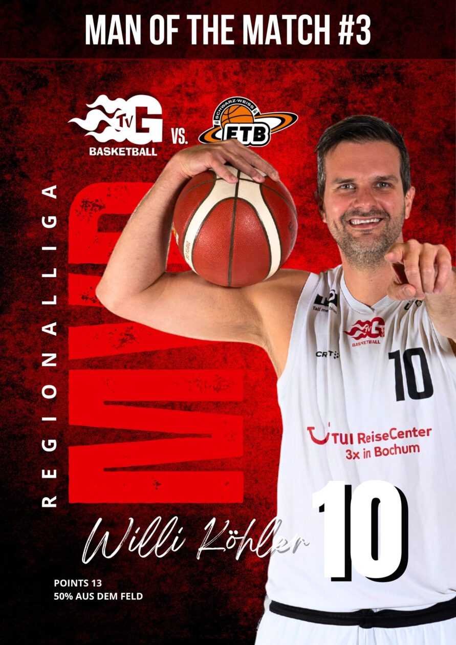 MVP in diesem Spiel ist Willi Köhler, der besonders im letzten Viertel die Nerven behalten hat und mit seinen Punkten für die richtigen Impulse gesorgt hat. Und da sag noch einer, man gehört mit 36 zu den alten Eisen ;)!