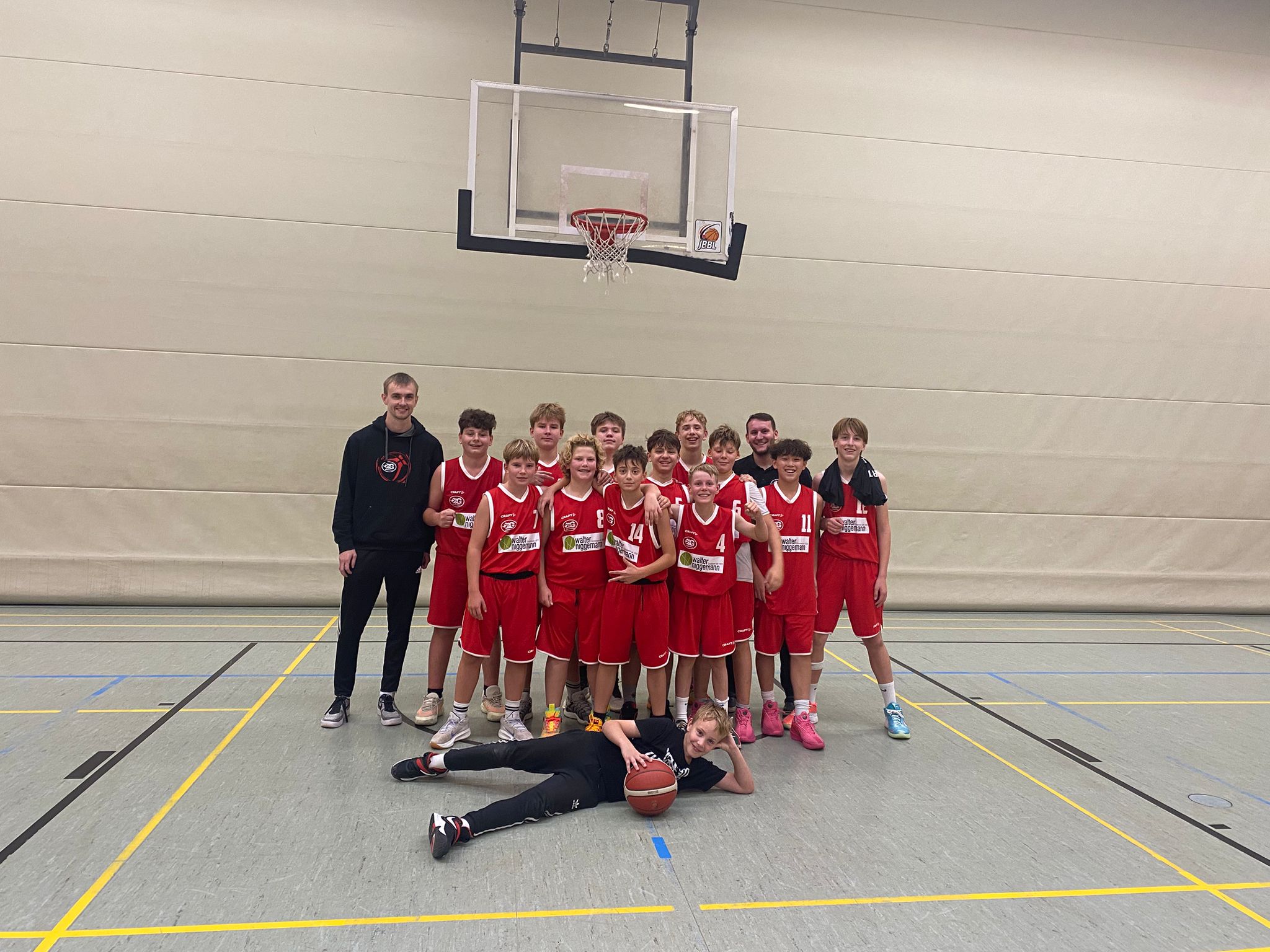 Das dritte Viertel begann dann die Starting-five aus den letzten beiden Spielen und zog das Tempo an beiden Seiten des Spielfeldes deutlich an. Erhöhte Intensität in der Defense sorgte dafür, dass man einige Ballgewinne forcieren und daraus resultierende Fastbreakpunkte erzielen konnte. Auch generell war es ein verbesserter Auftritt in allen Belangen. Gute Körpersprache, hohes Tempo und eine verbesserte Korblegerquote sorgten für einen 3:27 Lauf im dritten Viertel. Somit ging es mit einem beruhigenden 28:64 in die letzten zehn Minuten. Im Schlussviertel war es dann auf beiden Seiten ein lockeres Auslaufen. Das Spiel war bereits entschieden, beide Teams spielten sich immer wieder gute Abschlüsse heraus. Die Spielzeit wurde gut verteilt und jeder der eingesetzten Gerther Jungs kam zu Punkten.