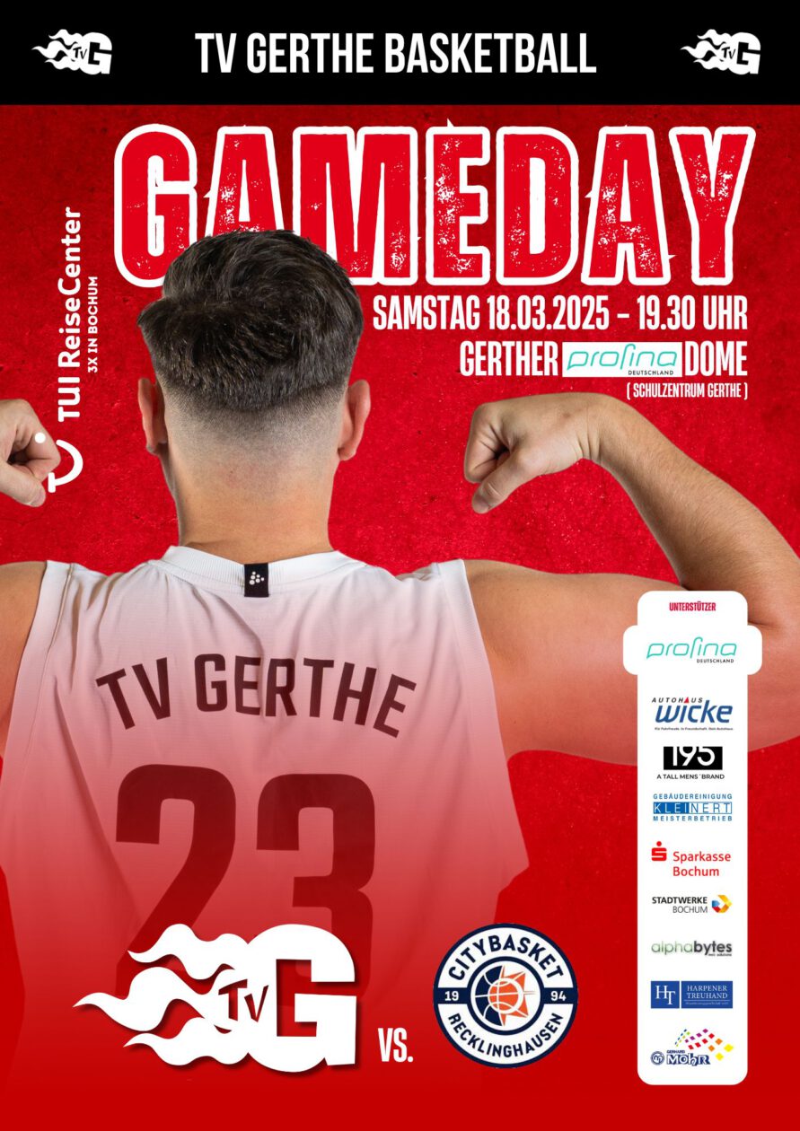 Am Samstagabend um 19:30 Uhr kommt es im heimischen Profina-Dome zum absoluten Topspiel der 2. Regionalliga. Unsere Herren empfangen mit den Citybasket Recklinghausen den aktuellen Tabellenführer zum direkten Duell um Meisterschaft und Aufstieg in die 1. Regionalliga. Die Ausgangslage ist klar und könnte spannender kaum sein: Gewinnt Recklinghausen, geht die Meisterschaft an den Favoriten. Gewinnt der TV Gerthe, ziehen die Gerther dank des direkten Vergleichs an den Gästen vorbei und hätten es am letzten Spieltag in Haspe selbst in der Hand. Mehr Endspiel geht nicht.