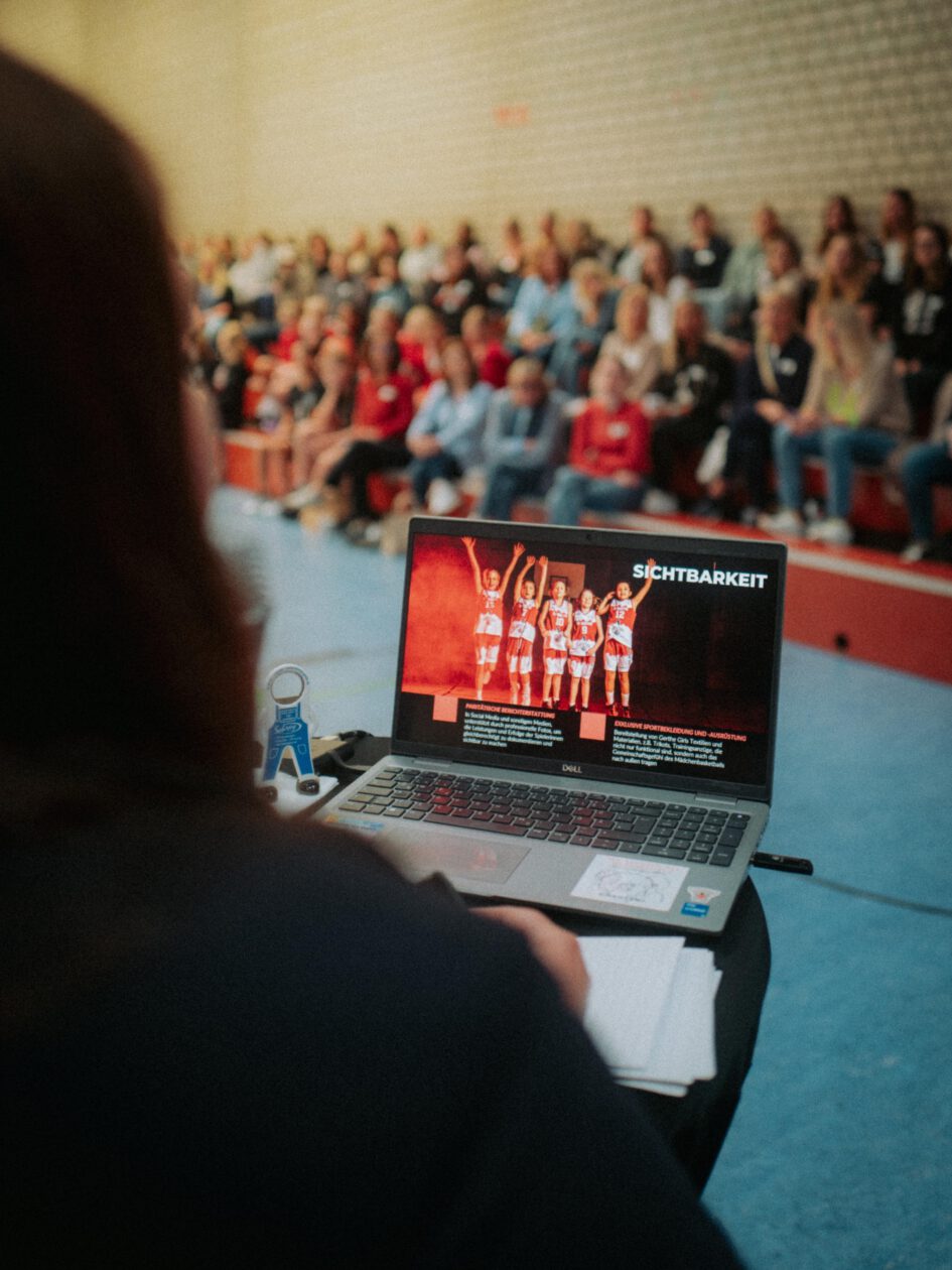Besonderer Höhepunkt war die Keynote von Sonja (Sunny G) Greinacher, die mit sehr persönlichen Einblicken ihren Basketballweg und die Überwindung von Rückschlägen beschrieb sowie zu den Themen Frauen im Sport, Teamgeist, Empowerment und mentale Stärke vortrug. Ein sehr inspirierender und berührender Beitrag einer außergewöhnlichen und erfolgreichen Spitzen-Sportlerin beim Basketball, der das Publikum und alle Aktiven begeisterte.