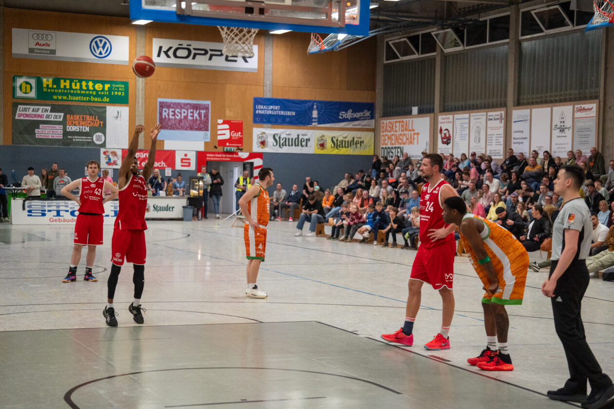 In der Schlussphase drehte sich das Spiel jedoch noch einmal. Dorsten suchte konsequent den Weg zum Korb oder fand freie Würfe von außen. Zwei Dreier von Stojanovski sorgten zunächst für den Ausgleich (70:70) und später für die 77:75-Führung der Gastgeber. Tarik Dixon antwortete auf Gerther Seite mit einem wichtigen Dreier zum 78:77, zwei Minuten vor dem Ende.