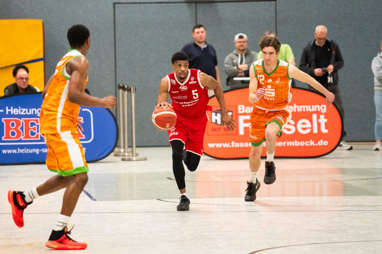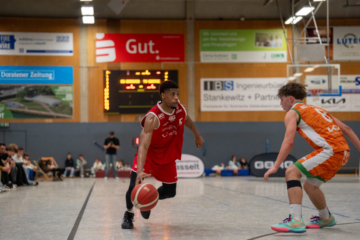 In der gut gefüllten Juliushalle in Dorsten sahen die Zuschauer von Beginn an eine intensive und spielerisch ansprechende Partie. Der TV Gerthe wollte sich für die Niederlage aus dem Hinspiel revanchieren, während die Gastgeber ihre Heimserie verteidigen wollten. Nach einer ausgeglichenen Anfangsphase, in der Dorsten mit 8:7 (5.) in Führung lag, übernahm der TV Gerthe zunehmend die Kontrolle über das Spiel. Mit starker Defensive, konsequenter Reboundarbeit und geduldig ausgespielten Angriffen setzten sich die Bochumer Schritt für Schritt ab und führten nach dem ersten Viertel verdient mit 25:12.