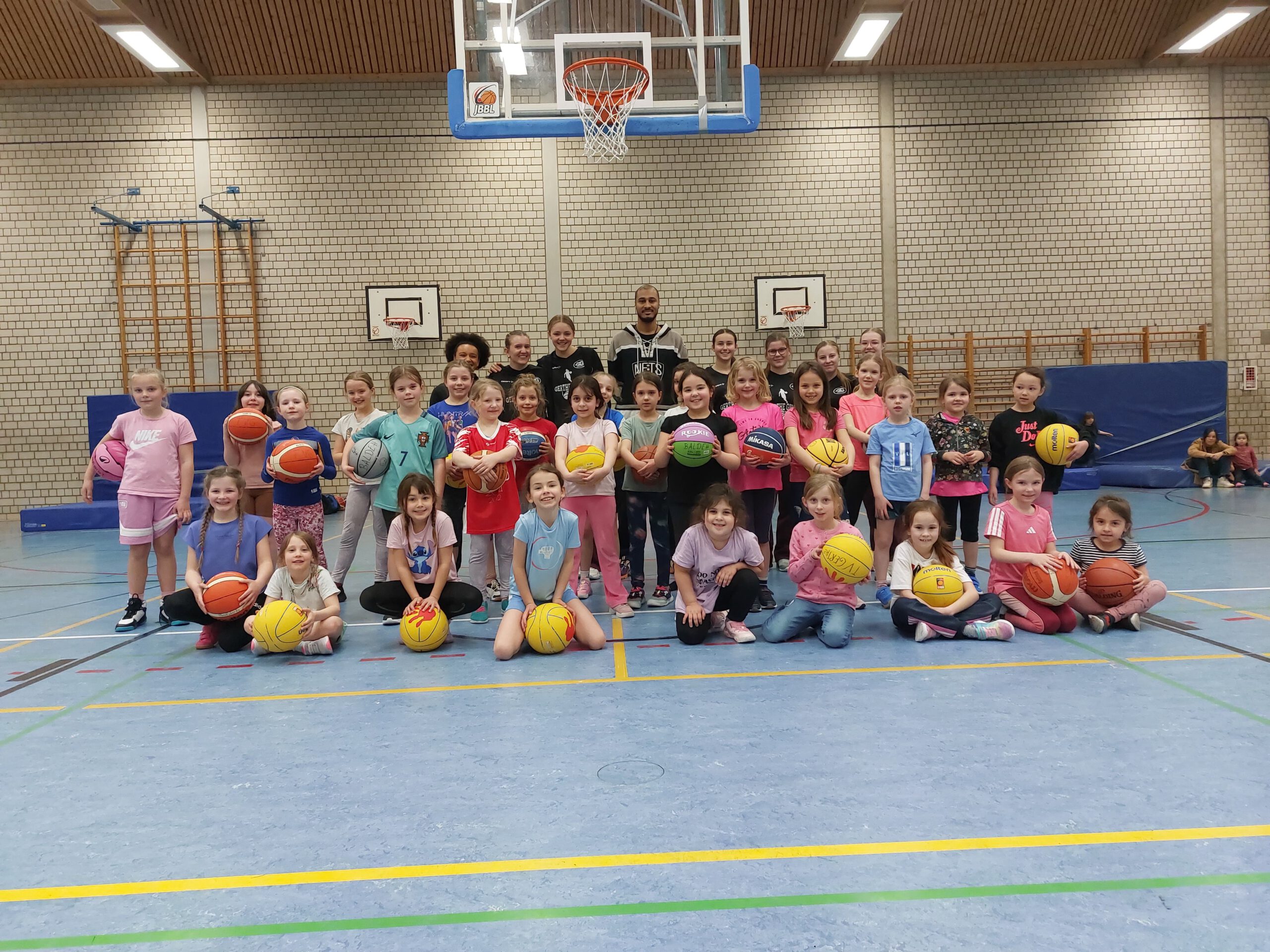 Der Gerthe Girls Day entwickelt sich immer mehr zur schönen Tradition im Vereinskalender – und auch in diesem Jahr war die Begeisterung wieder riesig. Insgesamt 35 Mädchen im Alter von 5 bis 9 Jahren fanden am Samstag den Weg in den Profina-Dome, um beim Schnuppertraining erste Erfahrungen mit dem Basketball zu sammeln.