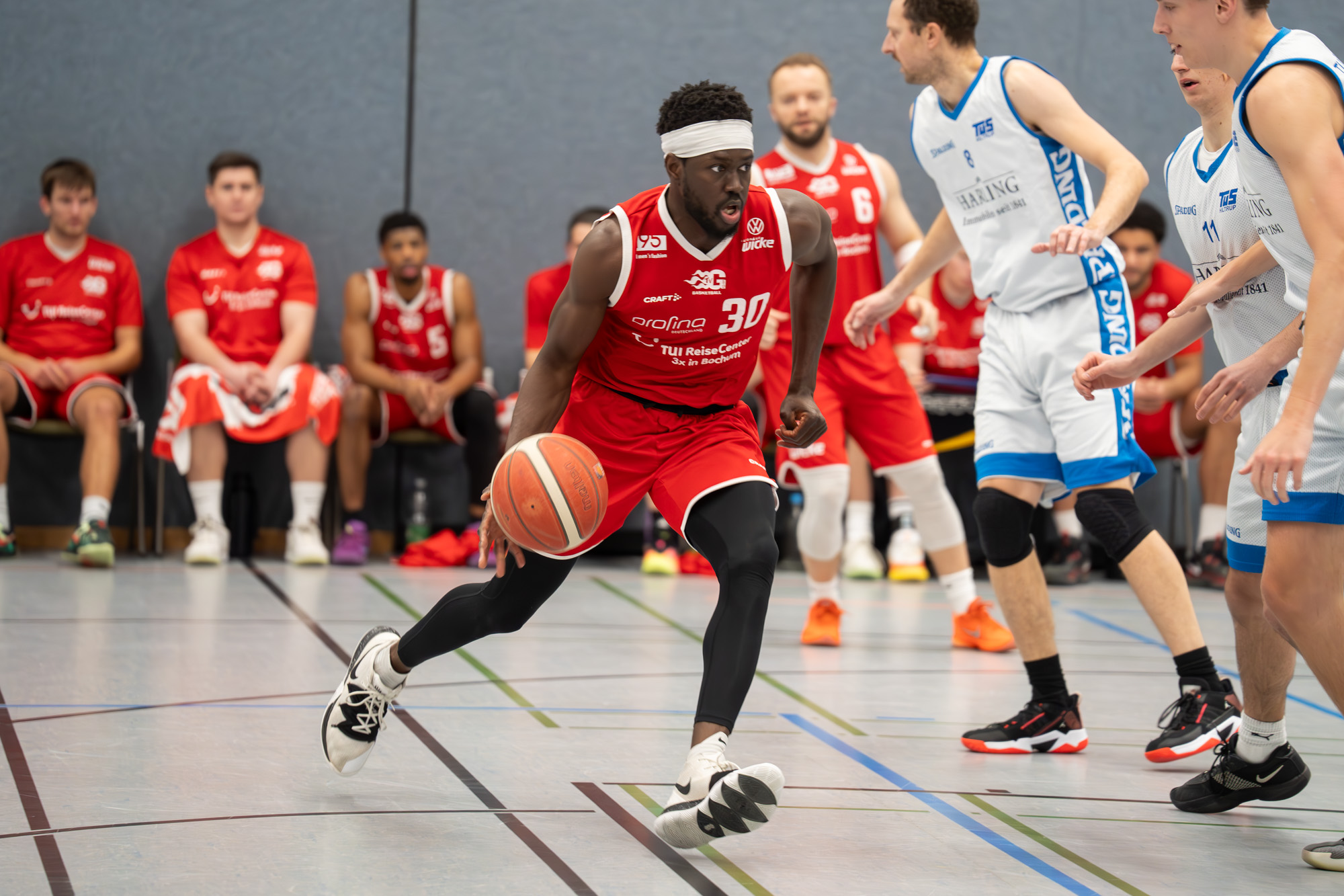 Am späten Mittwochabend machten sich die Gerther trotz widriger Bedingungen auf den Weg nach Hiltrup. Nach einer langen Anreise durch Schneetreiben und ohne optimale Trainingswoche fand der TVG trotzdem ordentlich in die Partie. Gegen die Zonenverteidigung der Gastgeber erspielte sich das Team viele freie Würfe, die an diesem Abend zunächst noch nicht wie gewohnt fielen. Da Hiltrup zudem seine körperlichen Vorteile am Brett gut ausspielte, blieb die Führung nach dem ersten Viertel knapp (20:14).