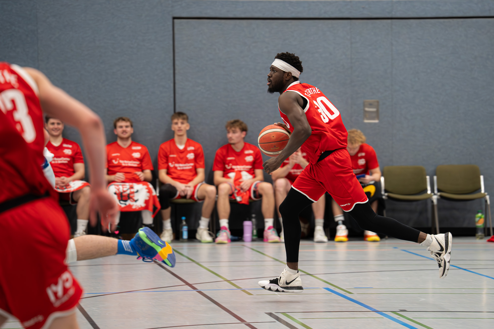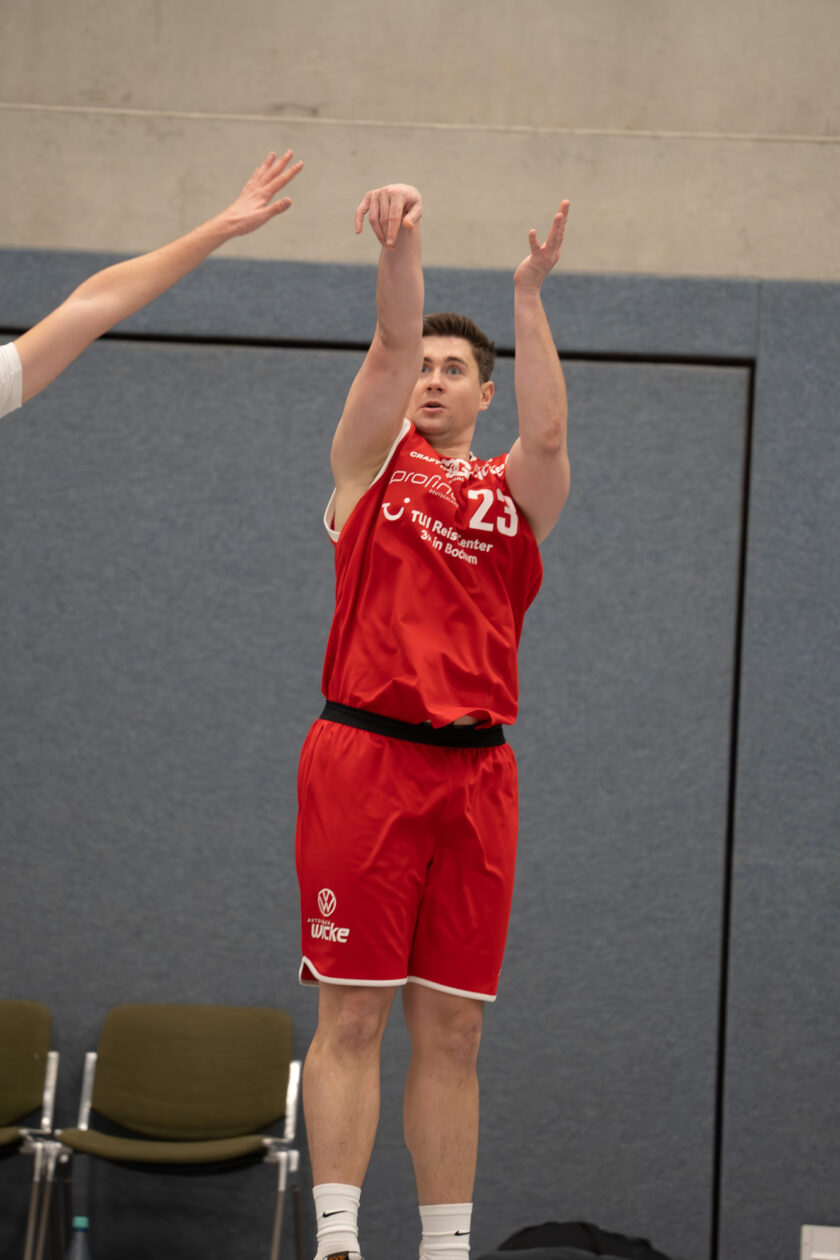 Auch im zweiten Abschnitt blieb es zunächst ein Geduldsspiel. Der Ball lief nicht immer schnell genug, in der Defensive fehlte phasenweise die letzte Konsequenz. Mitte des Viertels stand es daher nur 28:22 für die Gerther. Dann übernahm Tim Gilberti Verantwortung: Drei getroffene Dreier zum Ende des Viertels sorgten für den entscheidenden Push und eine komfortable Pausenführung (40:26).