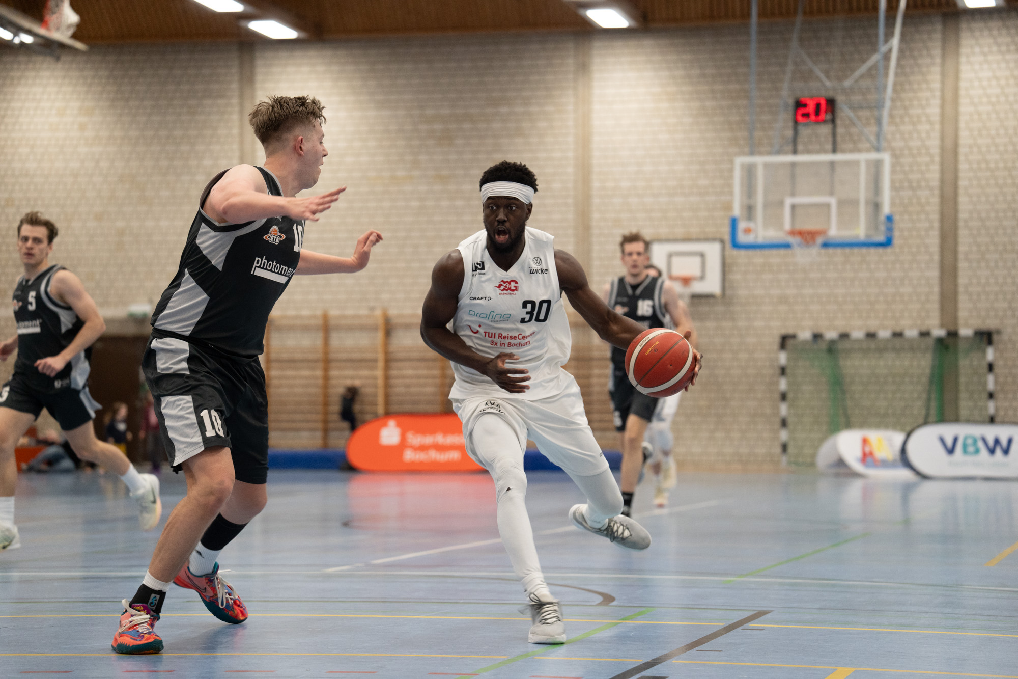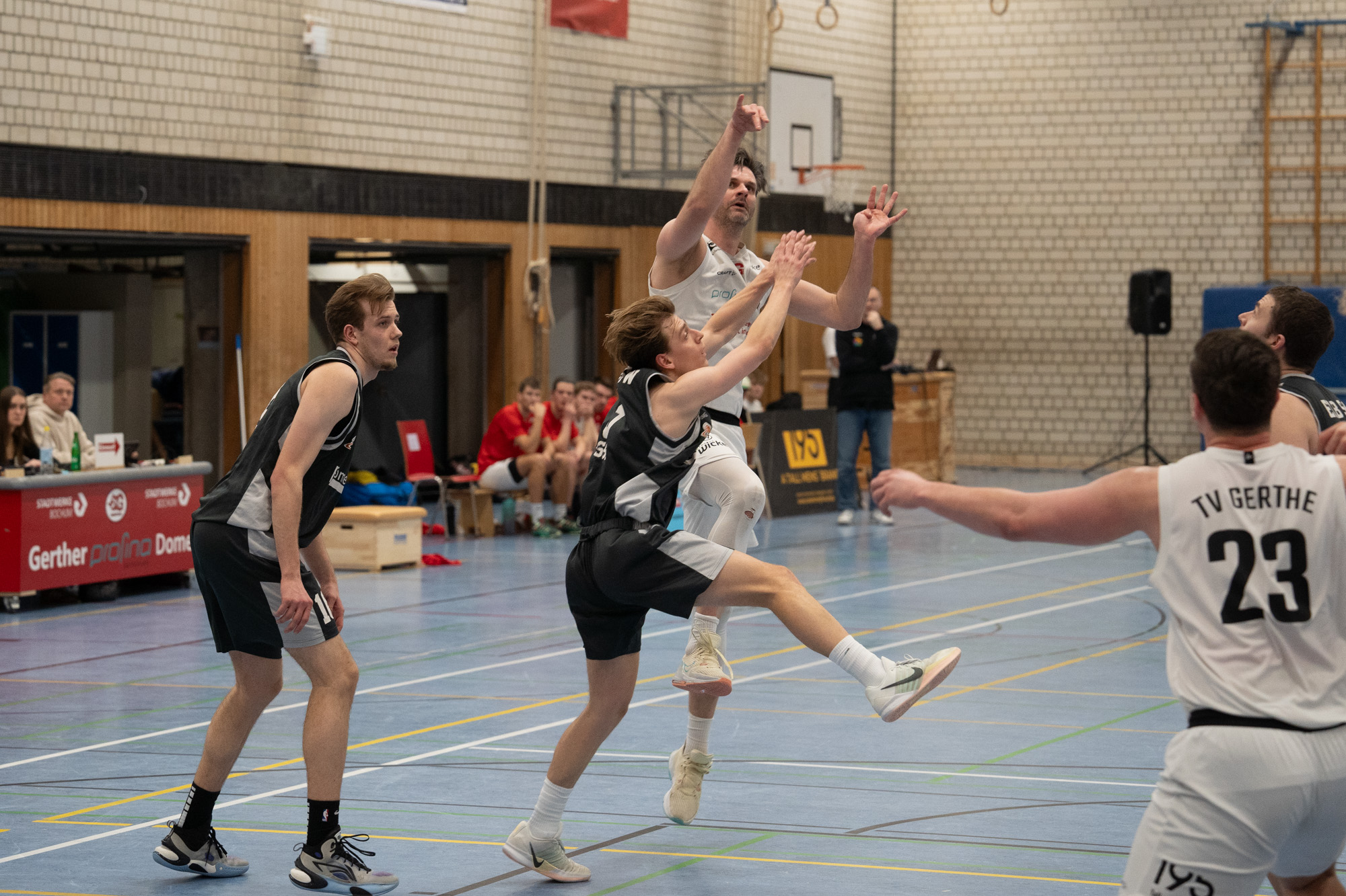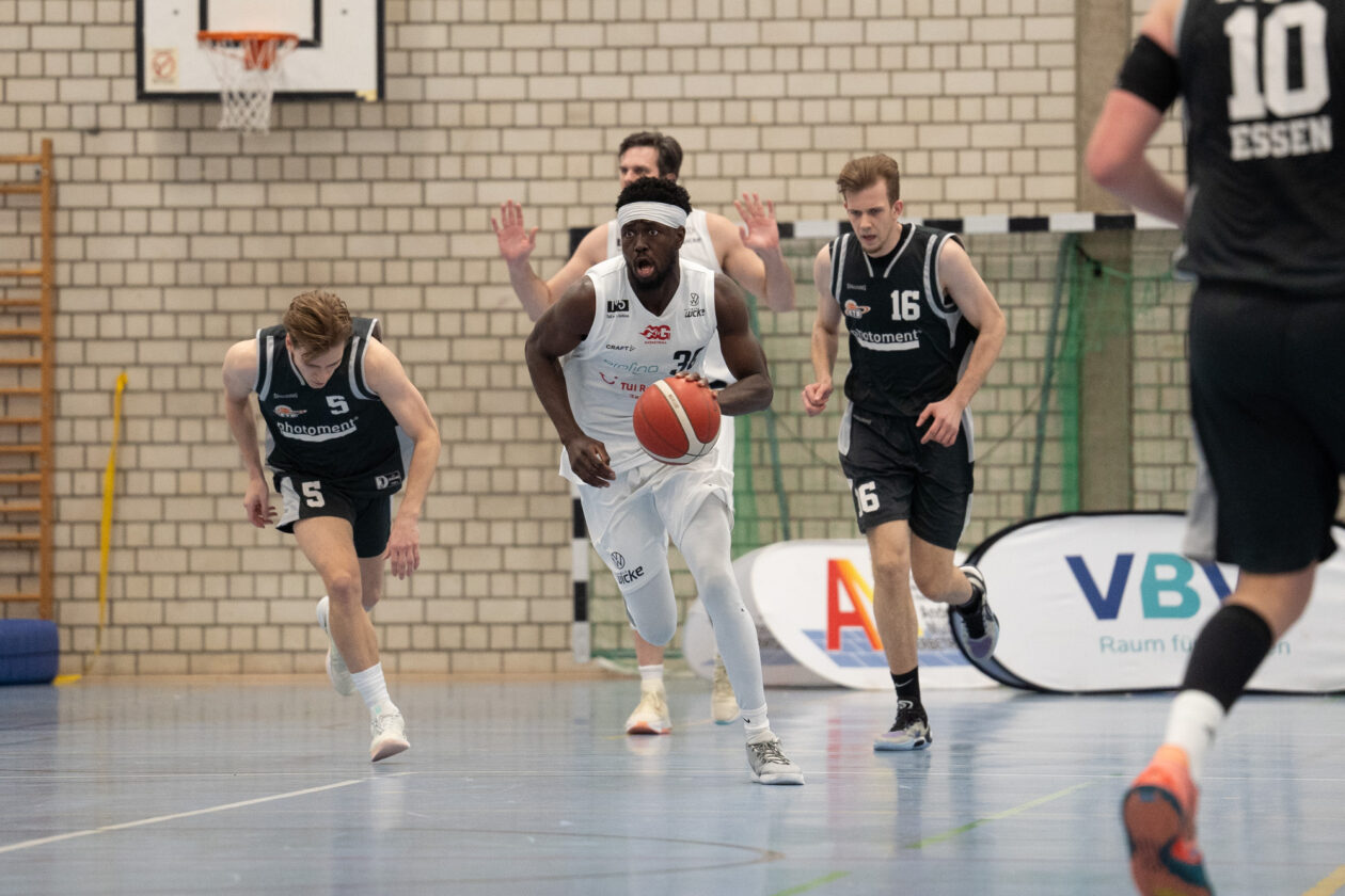 Im zweiten Abschnitt zeigte sich ein ähnliches Bild: Die Gerther waren insgesamt die bessere Mannschaft, bauten den Vorsprung zwischenzeitlich deutlich aus, erst auf 33:14, später sogar auf 37:19. Doch genau in dieser Phase machten sich die gleichen Fehler wieder bemerkbar. Zu viele Turnover und zu wenig Konsequenz im Abschluss brachten die Essener zurück ins Spiel. Zur Halbzeit stand ein vermeintlich beruhigendes, aber trügerisches 39:25 auf der Anzeigetafel.