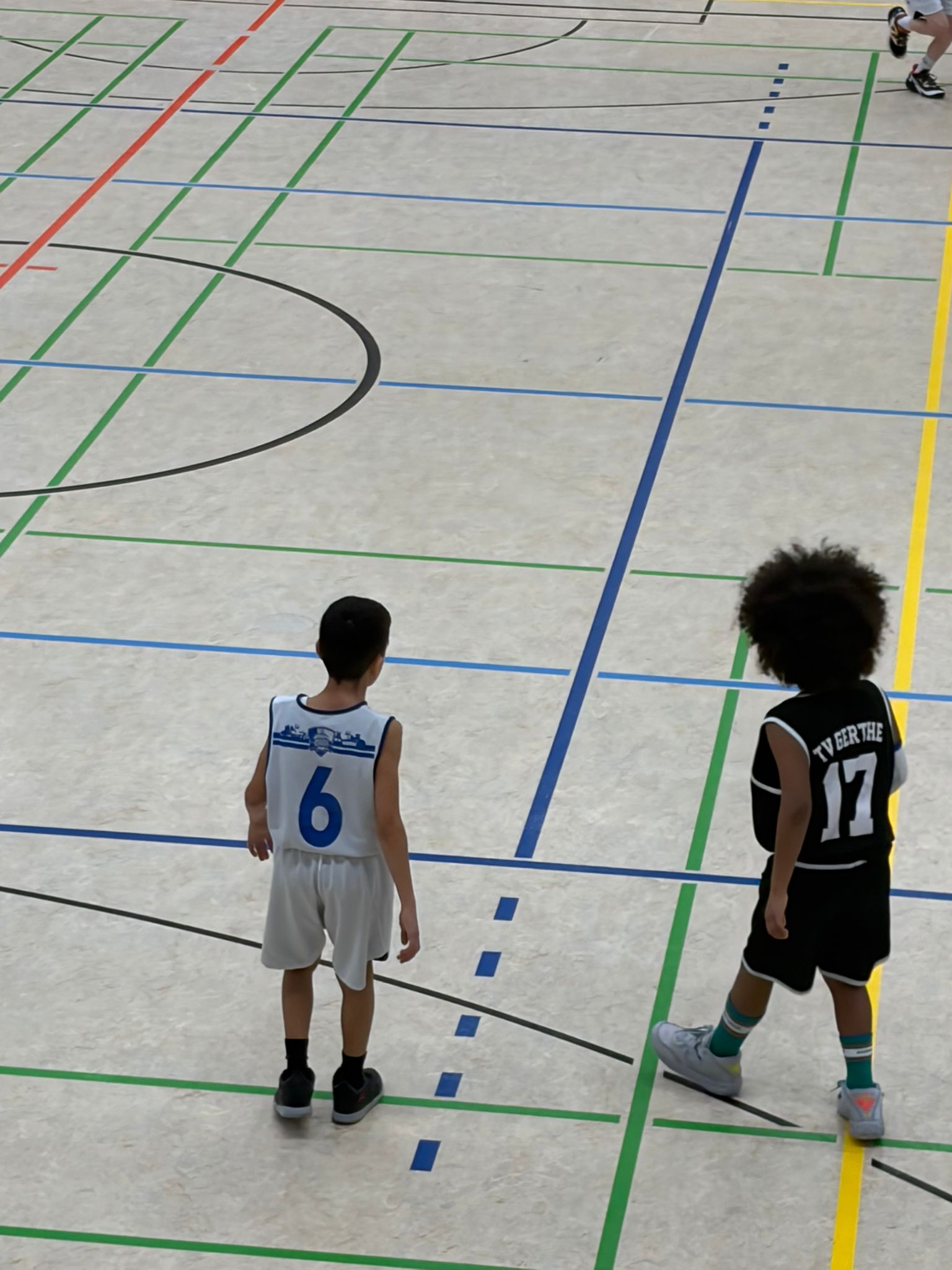 Die Gerther, die das Hinspiel knapp mit 6 Punkten gewannen, reisten mit acht Kindern an. Defensiv-Chefin Mila fehlte krankheitsbedingt – an dieser Stelle weiterhin gute Besserung. Dafür hatten die Gerther mit Akeem, nach 2,5-monatiger Pause und auskuriertem Mittelhandbruch, wieder ordentlich Offensivpower in ihren Reihen.