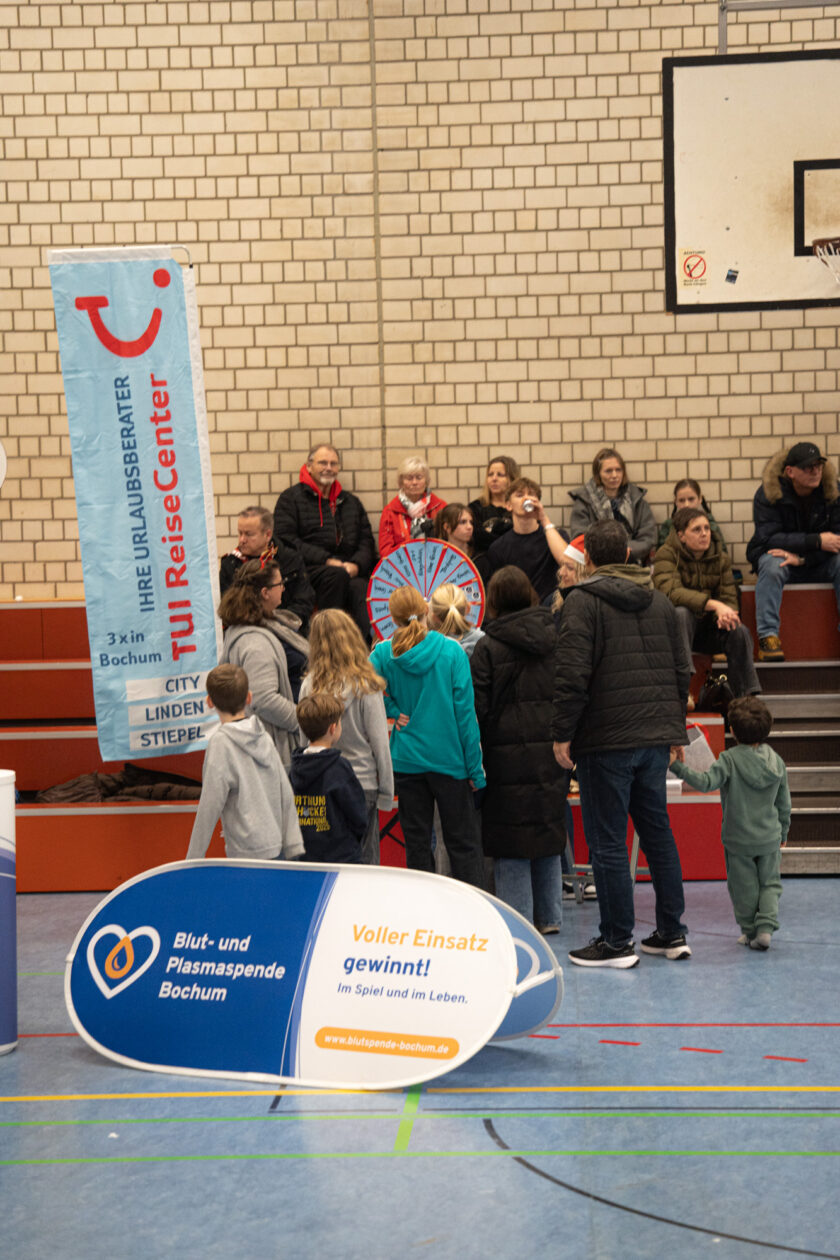 Unsere Partner waren ebenfalls stark vertreten. Die Profina GmbH, Namensgeber unserer Heimspielhalle, war mit einem eigenen Stand vor Ort, stellte sich der Gerther Community vor und zeigte sich begeistert von der Stimmung. Auch TUI, Partner der Herren 1, war wieder mit einem Stand und dem beliebten Gewinnrädchen dabei, an dem viele Kinder tolle Preise abräumen konnten.