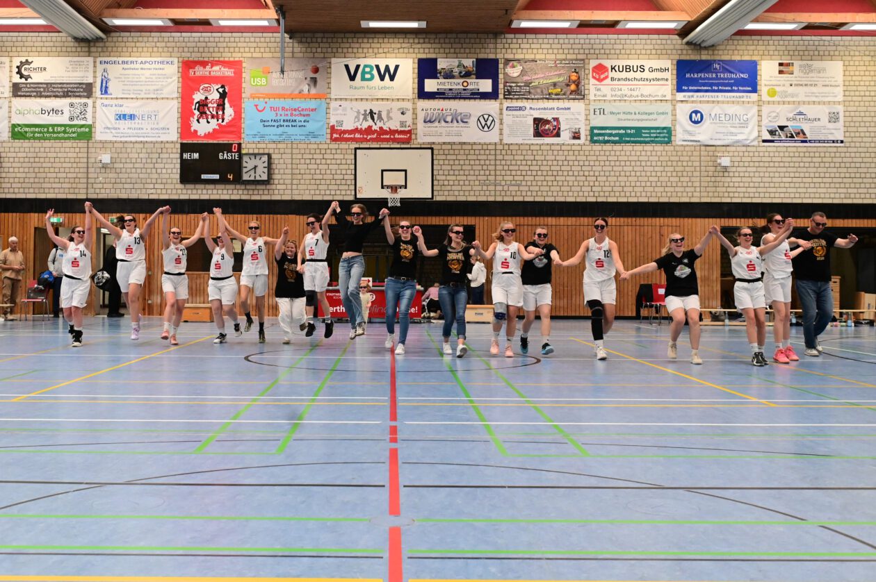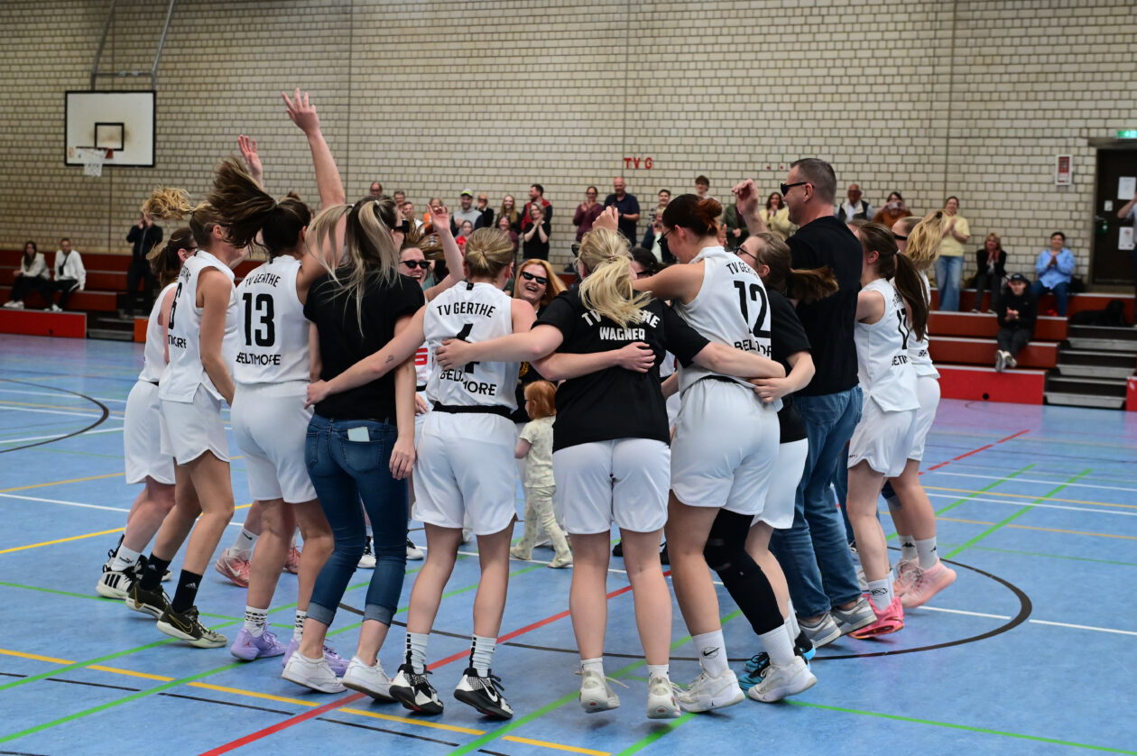 Mit dem Heimsieg und der anschließenden Meisterfeier endet eine außergewöhnliche Saison, die dem TV Gerthe verdient den Titel einbringt und allen Beteiligten lange in Erinnerung bleiben wird. Wir können uns damit über den größten Erfolg der Vereinsgeschichte im Damenbasketball beim TV Gerthe freuen mit einer aufgebauten gezielten Förderung des Mädchen- und Damenbasketballs in unserem Verein.