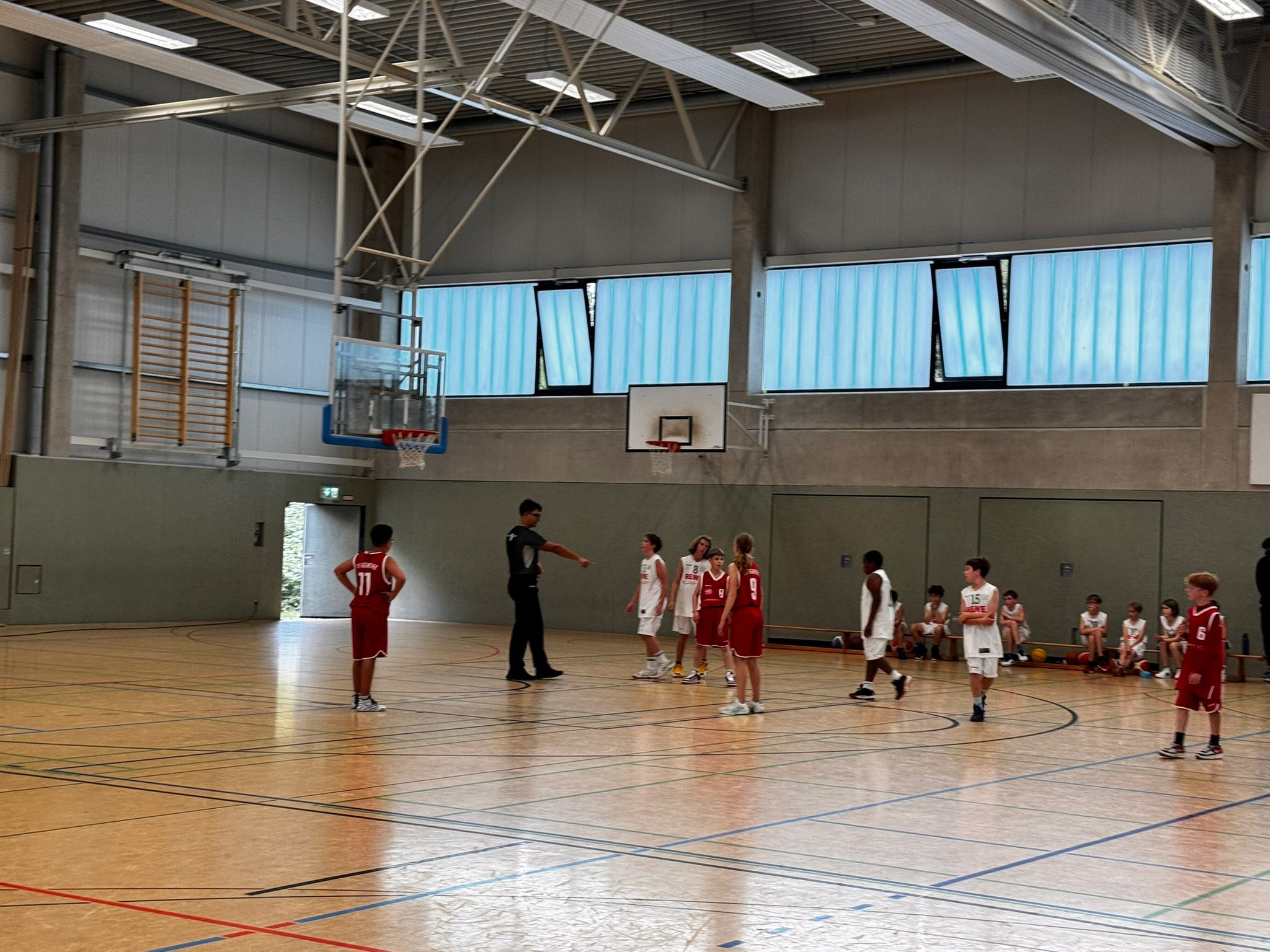 Im nächsten Heimspiel ging es gegen DJK-Adler Frintrop. Die Gäste waren mit nur 7 Spielern angereist, zeigten aber von allen Gegnern bisher die beste Spielstruktur. Die Spieler hatten klare Positionen und suchten die Missmatches. Hier zahlten wir in einigen Situation sehr viel Lehrgeld, weil wir zu oft den Ballgewinn haben wollten, statt bei den Gegenspielern zu bleiben. Das führte zu einfachen Körben für die Gäste. Wir steigerten uns aber im Laufe des Spiels und es gab Achtel, wo wir defensiv nicht viel zuließen und gut die starke Hand zu machten. Offensiv agierten wir mutig, ließen aber leider zu viele Chancen ungenutzt. Ein Sonderlob haben sich in diesem Spiel Damian und Johann verdient, die offensiv gute Entscheidungen trafen und sehenswerte Treffer erzielen konnten. Svea und Theresa konnten auch offensiv glänzen. Weil die Gegner unsere Fehler konsequent bestrafen ging das Spiel mit 54 zu 84 ein bisschen zu deutlich aus. Hier war ein engeres Ergebnis auf jeden Fall möglich gewesen.
