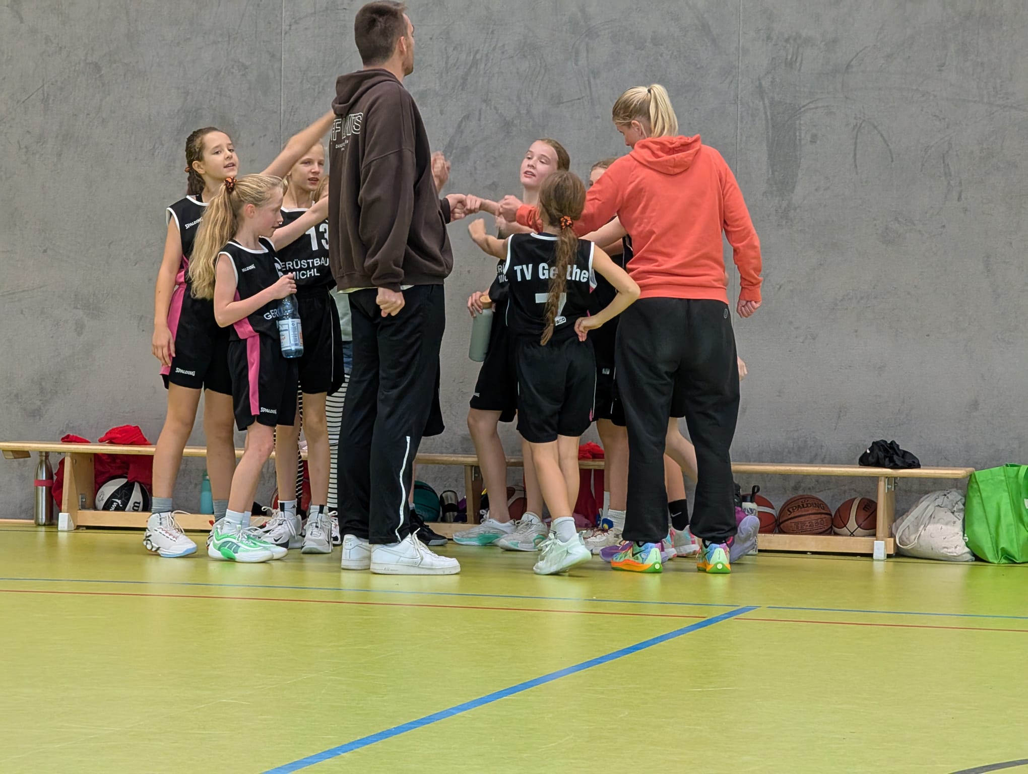 Besonders beeindruckend war die defensive Leistung: Mila und Sophie bekamen die Aufgabe, die starke Nummer 4 der Gegnerinnen aus dem Spiel zu nehmen und meisterten das mit Bravour. Der Lohn war eine komfortable 35:11-Führung zur Halbzeit. Während die Defensive kaum etwas zuließ, war offensiv sogar noch Luft nach oben. In der zweiten Hälfte konnte das Trainerteam viel rotieren und allen Spielerinnen wertvolle Einsatzzeit geben. Theresa und Svea waren offensiv kaum zu stoppen und sorgten immer wieder für Highlights unter dem Korb. Doch auch der Teamgeist stand im Mittelpunkt: Jede Spielerin kämpfte, half in der Defense aus und trug zum deutlichen Erfolg bei. Am Ende stand ein überzeugendes 71:19 auf der Anzeigetafel, der dritte Sieg im dritten Spiel für die Gerther U12-Mädchen.