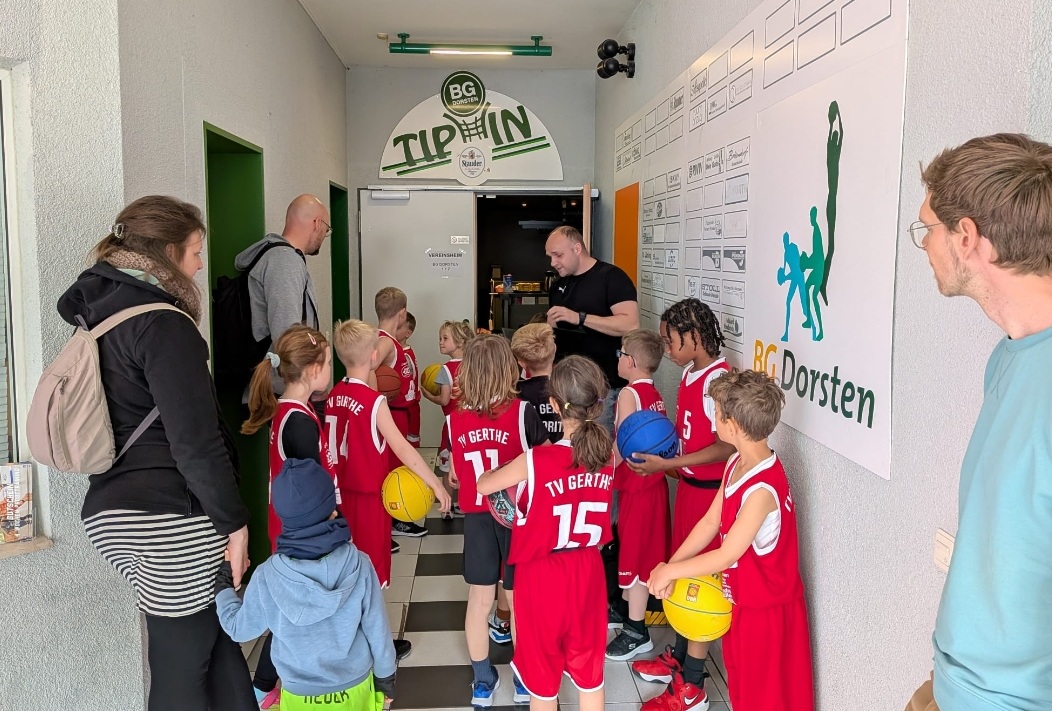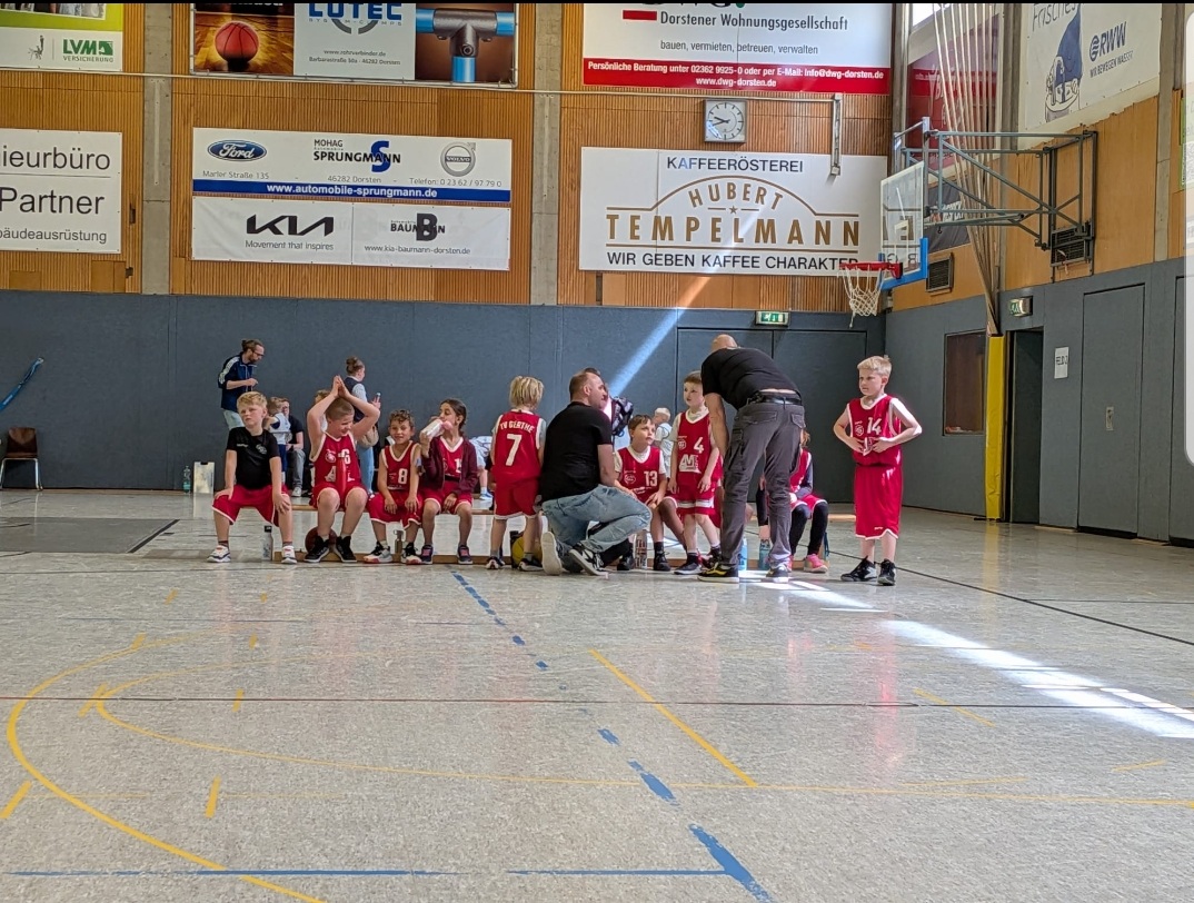 Am vergangenen Wochenende (25.04.2026) hieß es für unsere U8-Minis: Auf nach Dorsten! Die BG Dorsten war Ausrichter eines großen Turniers mit insgesamt 12 Mannschaften. In Vertretung des Headcoachs übernahmen Nikolai und Markus W. die Betreuung des 12-köpfigen Kaders, der von zahlreichen Eltern am Spielfeldrand lautstark unterstützt wurde.