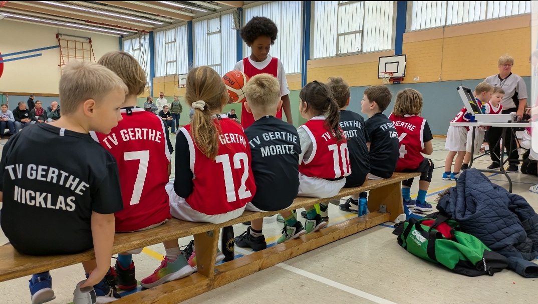 Das letzte sportliche U8 Event 2025 führte uns am Nikolaustag zu den Nachbarn nach Herne, wo wir auf die Mädchen der Ruhrpottbaskets und die Jungs aus Königshardt trafen. Wir konnten mit 12 motivierten Gerther Kids früh in Herne die Halle erreichen, denn es ging schon früh um 9:30 Uhr los.