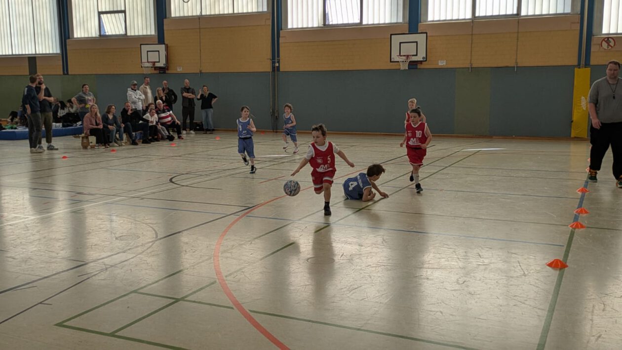 Am Samstag, den 07.03.26, machten wir uns mit neun Mini-Basketballern auf den Weg nach Herne, um dort an einem Turnier des Basketballkreises Bochum teilzunehmen. Da Markus seine U12 parallel in Gerthe coachen musste, übernahmen zunächst Sebastian und Nikolai die Betreuung an der Seitenlinie. Neben unserem Team nahmen außerdem die Witten Baskets, die VfL Astrostars Bochum sowie die Gastgeber, die Ruhrpott Baskets Herne, teil.