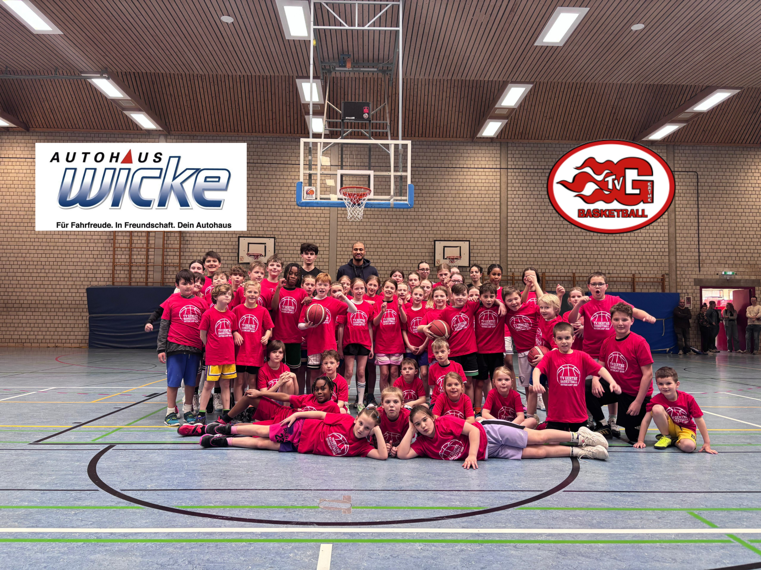 In der zweiten Ferienwoche findet auch in diesem Jahr wieder das beliebte VW-Wicke-Ostercamp im Gerthe Dome statt – und erneut wird es seinem hervorragenden Ruf mehr als gerecht. Insgesamt 50 basketballbegeisterte Kinder im Alter von 7 bis 12 Jahren nehmen teil und erleben vier intensive, abwechslungsreiche und vor allem spaßreiche Tage rund um den orangefarbenen Ball.